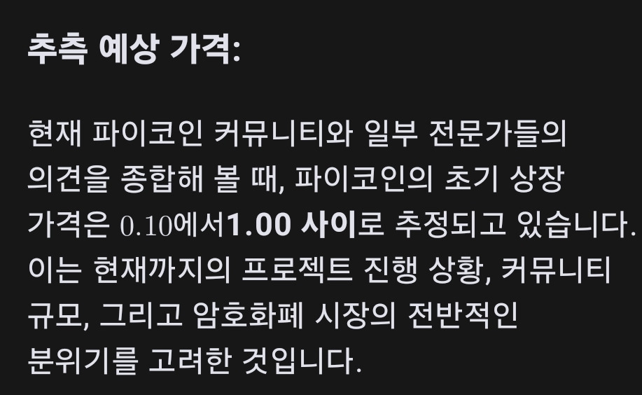 오늘 여러 지인분들이 파이(PI)코인에 대해 물어보더군요. 기억을 더듬어보니 여러 커뮤니티에 스팸글로 봤던 기억이 나네요. 그런 코인이 이번 달에 상장한다고 하니 관심이 뜨거운 것 같습니다. 몇 천를 가지고 있다는 지인은 지금까지 주식과 코인에 물린 걸 한방에 만회하겠다는 굳은 의지를 보이더군요. 하지만 상장 시 초기 금액이 중요하겠죠. 개인들이 모두 매도하고 떠날 테니까요. 그래서, 현 시세의 최고의 지식인의 양대 산맥이라고 할 수 있는 미국의 최고의 지식인 챗GPT4와 중국의 지식인 중 신흥강자인 DeepSeek에 물어보았습니다.