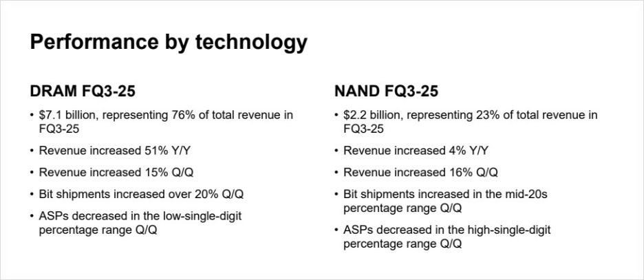 - DRAM : 71억 달러 (전체 매출의 76%) (QoQ +15%, YoY +51%)
