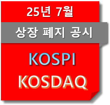 코스피/코스닥 2025년 7월 상장폐지 공시 종목들을 알아봅시다.
