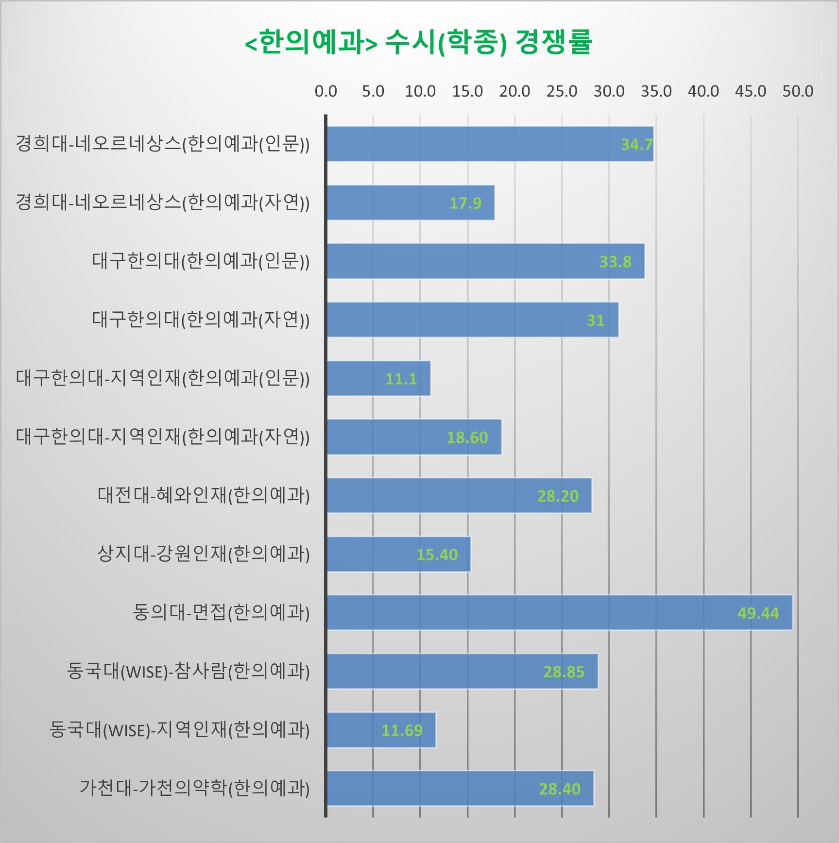 웹상에 떠도는 전국 한의예과 순위를 기반으로 정렬하였습니다.