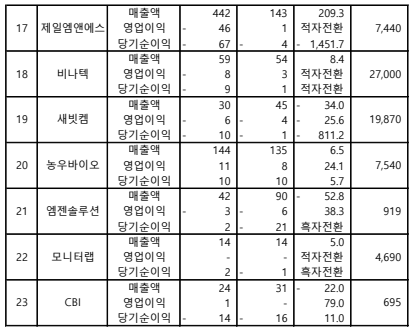 * 노란색은 매출액/영업이익/당기순이익이 전기대비 10%이상 상승 종목