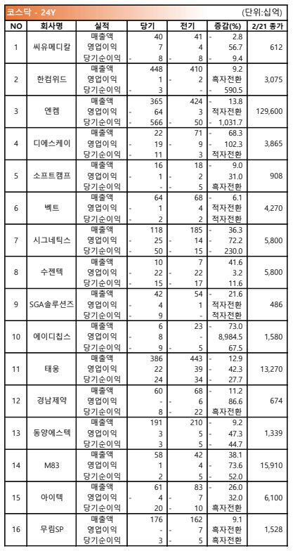 2025/02/21 코스닥 실적공시