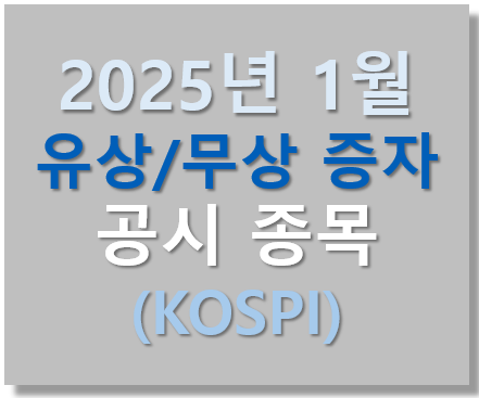 2025년 1월 코스피 유상/무상 증자 공시 종목을 알아봅시다.